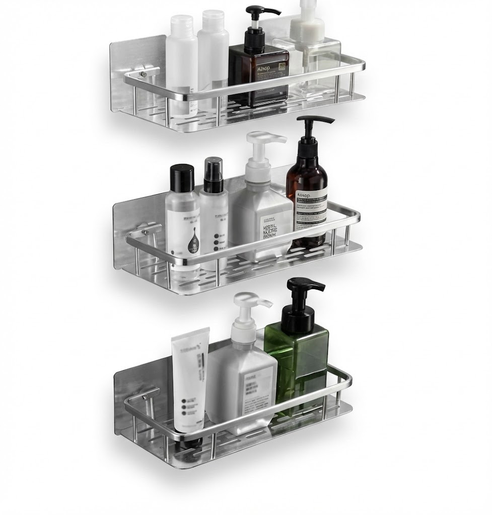 3 szintes fali fürdőszobai polc – fúrás nélkül, öntapadós rögzítéssel