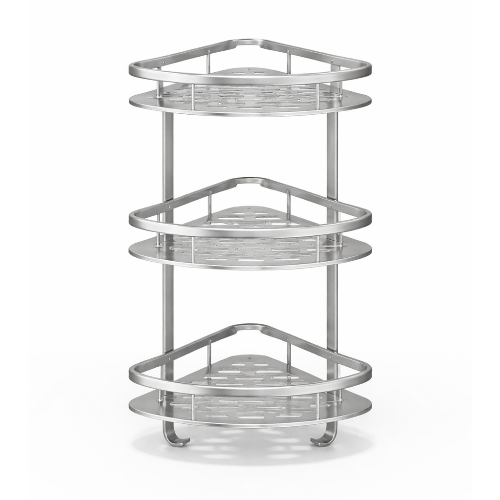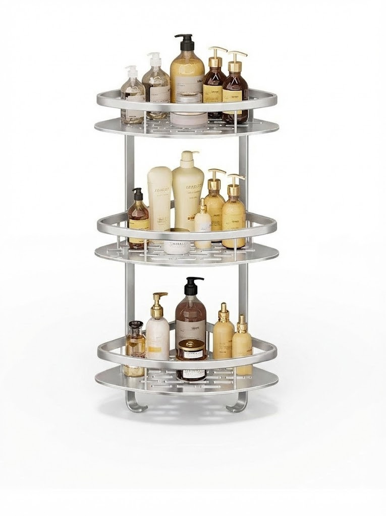 A háromszintes sarok fürdőszobai polc ideális megoldás a samponok, tusfürdők, borotvák és kozmetikumok rendszerezett tárolására. A sarokba illeszkedő kialakítás helytakarékos, mégis nagy tárolókapacitást biztosít.