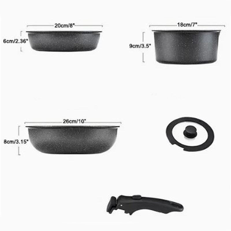 A készlet prémium alumíniumból készült, tapadásmentes bevonattal, így az ételek nem ragadnak le, a tisztítás pedig gyerekjáték.