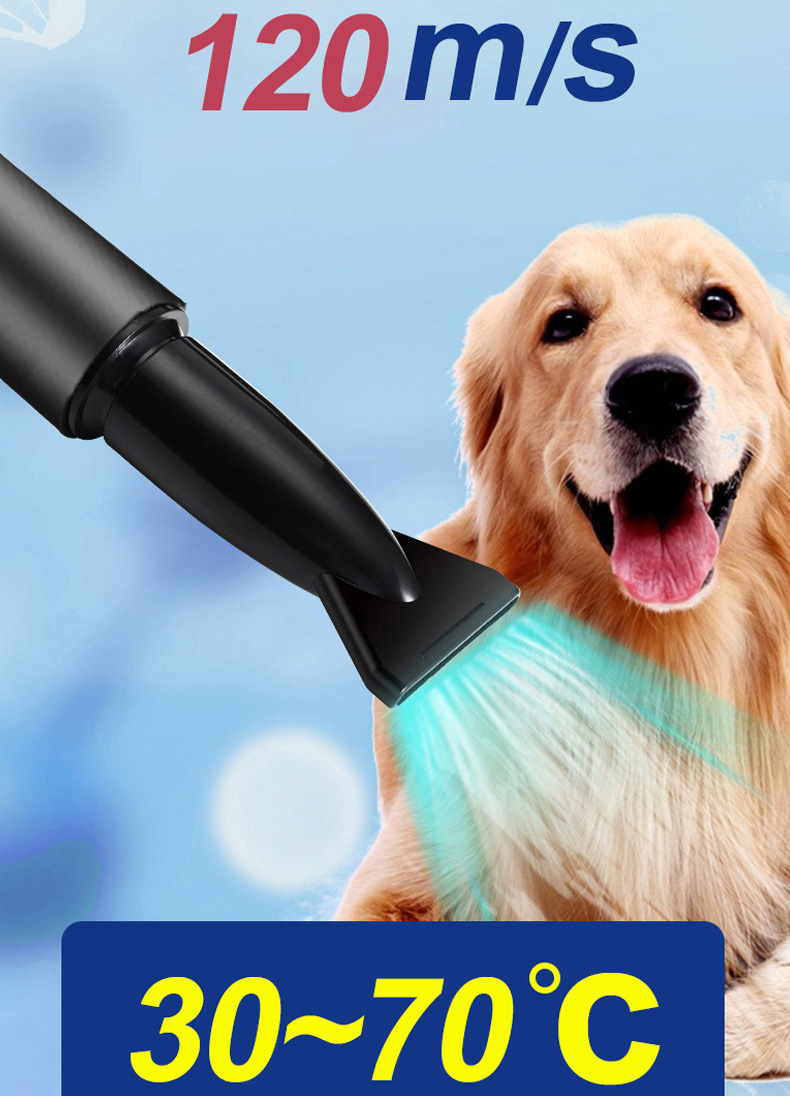 A 3800W teljesítményű rézmagos motor erős, de kíméletes légáramot biztosít, így kedvenced bundája gyorsan és kényelmesen szárad meg. A hőmérséklet 30–70°C között fokozatmentesen állítható, hogy mindig biztonságos és kényelmes legyen a szárítás.