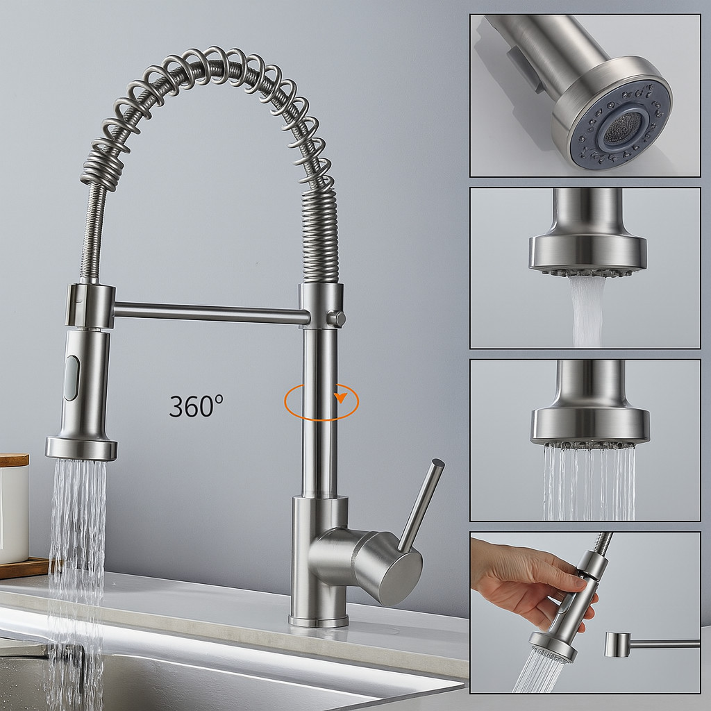 Ez a teleszkópos konyhai csaptelep ideális választás a modern konyhákba, ahol a praktikum és a dizájn egyaránt fontos. A kihúzható zuhanyfejnek és a rugalmas, spirálrugós tömlőnek köszönhetően a csap rendkívül sokoldalúan használható – legyen szó zöldségek öblítéséről, edények mosásáról vagy a mosogató tisztításáról.