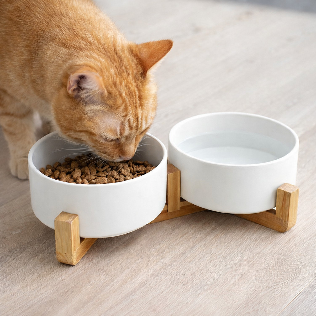 Dupla kerámia etetőtál macskáknak és kutyáknak – nyakvédő kialakítású