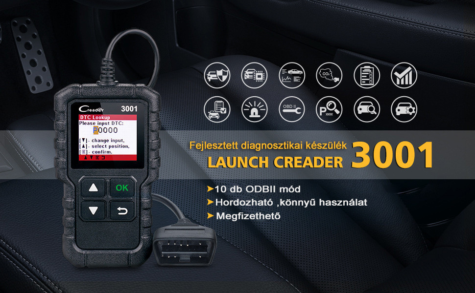 A Creader 3001 OBDII Hibakódolvasó egy megbízható és könnyen használható eszköz, amelyet 1996-tól gyártott (OBDII és CAN) járművekhez terveztek. Az alábbi protokollokat támogatja: ISO9141-2, ISO14230-4, SAEJ1850, ISO15765-4. Az olvasó széleskörű lefedettséggel rendelkezik, beleértve a legújabb modelleket is.