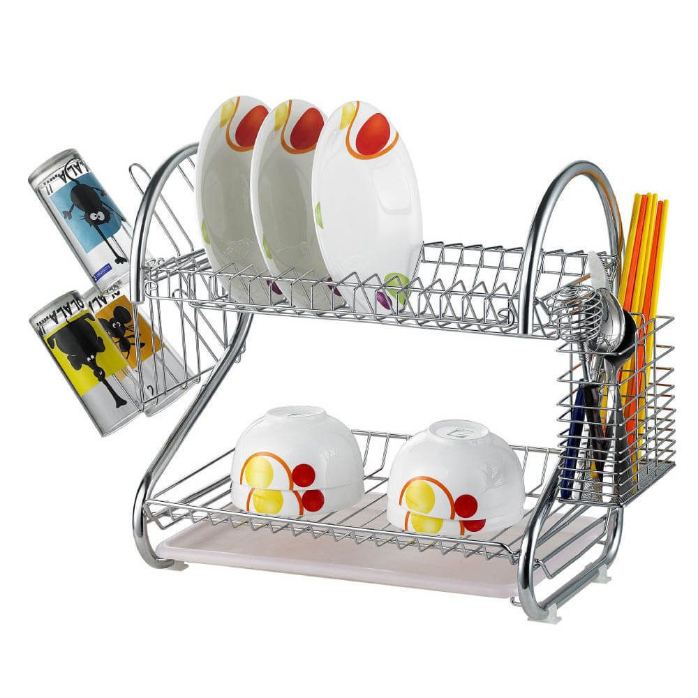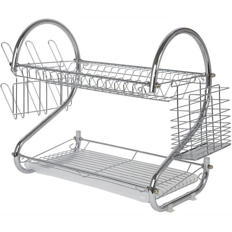 Négy részes: a fenti rész tányérok számára, az alsó rész nagyobb edények, üveg poharak számára, a két kisebb oldalsó rész pedig evőeszközök és fedők vagy csészék szárítására alkalmas.