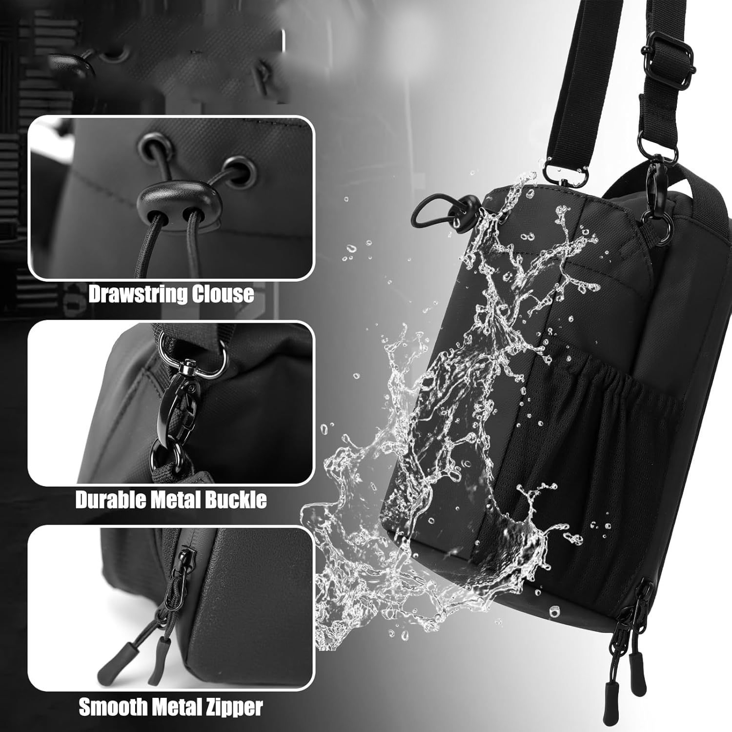 A táska ellenáll esőnek, fröccsenő víznek és a mindennapi kopásnak.