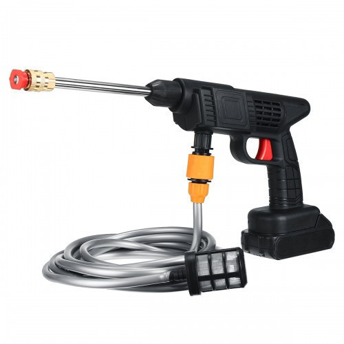 A maximális üzemi nyomás ezen a nagynyomású mosón 500 PSI/6,0 MPA, a maximális vízbemeneti nyomás pedig 1 MPA, a vízáramlás sebessége pedig 300 l/h. Ez a hordozható nagynyomású mosó egy 24V-os lítium akkumulátorral rendelkezik, ami nagy teljesítményt nyújt. Vezeték nélküli, könnyű és kompakt kialakításának köszönhetően bárhová magával viheti. Autók, teherautók, motorkerékpárok, felhajtók, kerítések és kerékpárok néhány perc alatt megtisztíthatók ezzel a magasnyomású mosóval.