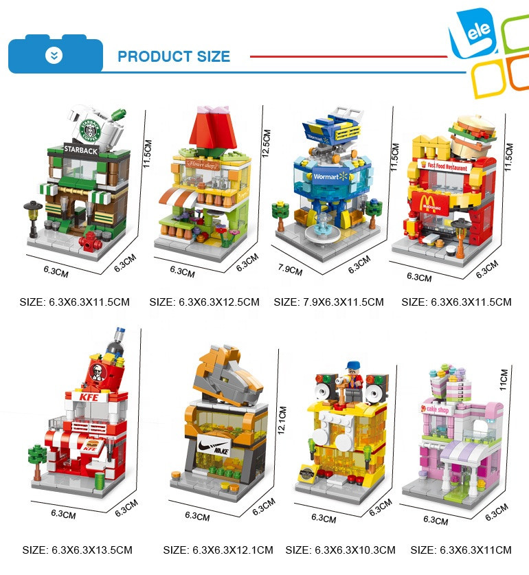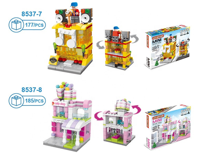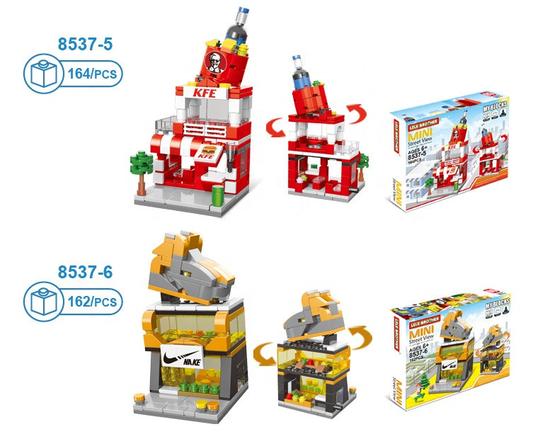 A szett 8 külön megvásárolható épületből áll, amelyek önállóan is megépíthetők, de egymáshoz illesztve egy teljes sétálóutcává alakíthatók.