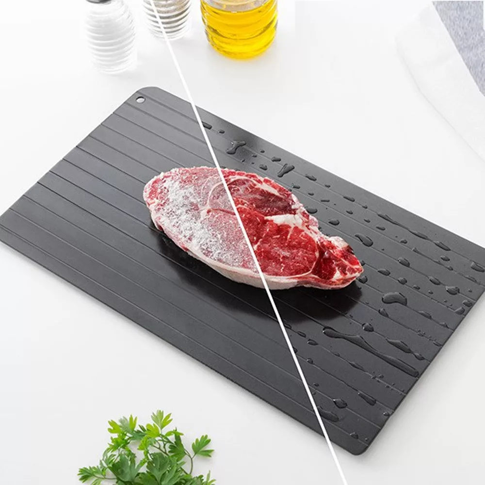 Egy igazán hasznos tálca, amellyel gyorsan kiolvaszthatsz húst, halat, vagy bármely más ételt. Magas hővezető képessége csökkenti az étel kiolvasztás idejét villamos energia nélkül, így sokkal természetesebb és megfizethetőbb kiolvasztó módszer, mint a sütő, vagy a mikró használata. Egyszerűen helyezd a fagyasztott ételt a tapadásmentes fém tálcára és négyszer gyorsabban fog felengedni anélkül, hogy elveszítené tulajdonságait és a tápanyagait.