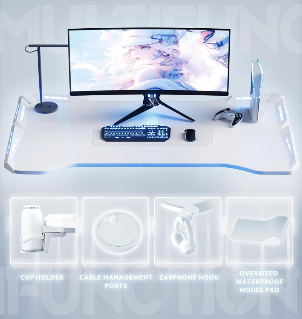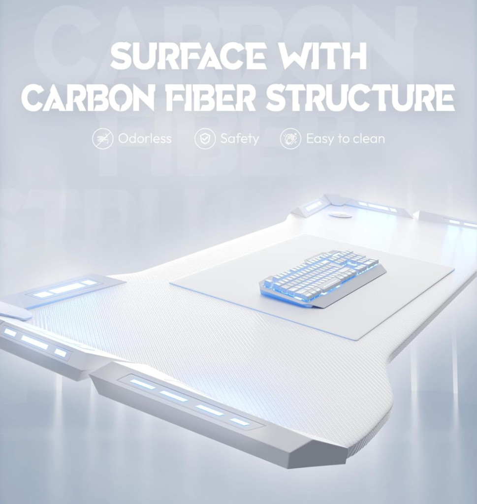Ha egy stabil, látványos és praktikus gamer asztalt keresel LED világítással és prémium karbon szálas felülettel, ez a modell tökéletes választás a teljes gaming setupod központi elemeként.