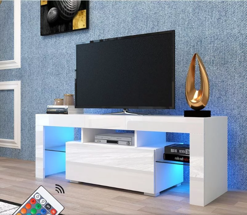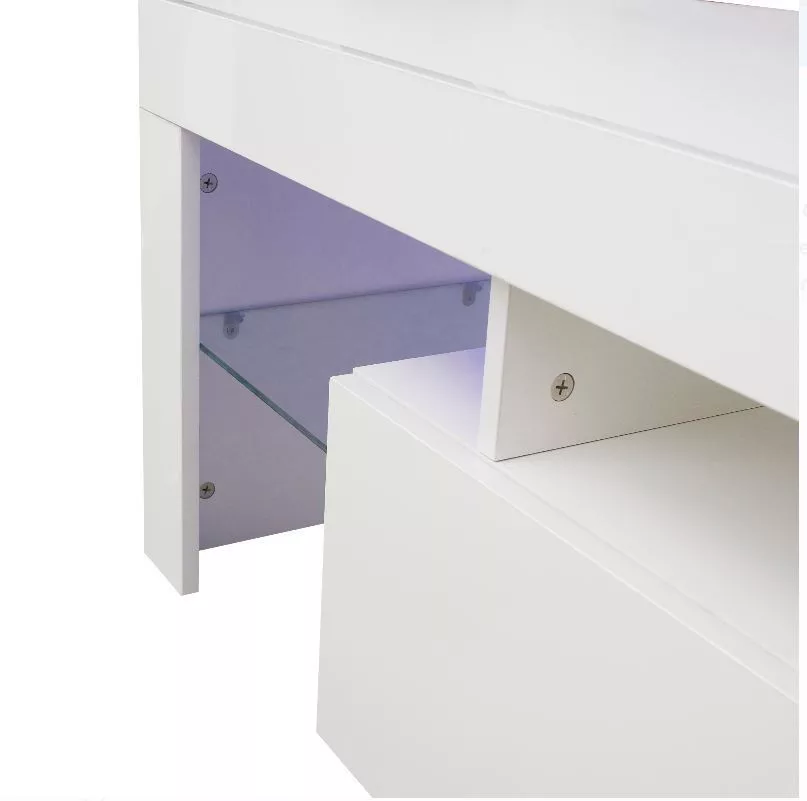 Ez a modern TV állvány 12 színű LED lámpával rendelkezik. A fehér TV szekrény remek tároló tuladonságokkal bír.