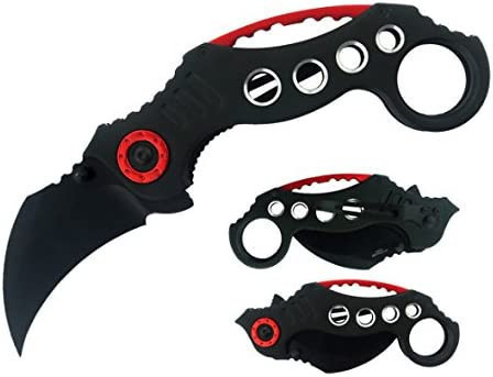 Ork Defender 5.5" Fekete és Piros Rugós Karambit