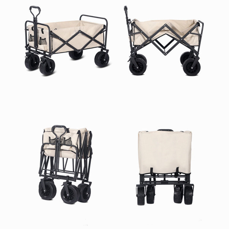 Az összecsukható kézi kocsi bézs színben és 5 colos kerékkel rendelkezik. Ez a praktikus és könnyen szállítható kocsi ideális választás lehet mindennapi teherhordásra, bevásárlásra vagy kirándulások során.