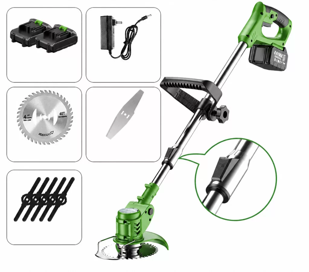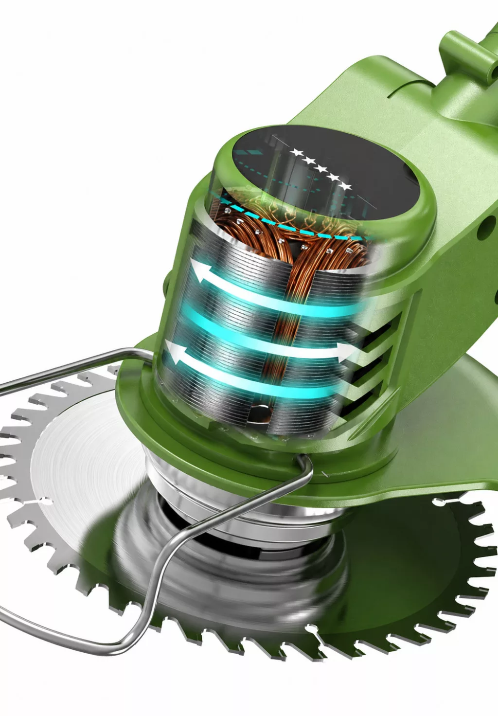 Erős Motor: A szegélynyíró fűnyíró 48V-os lítium-ion akkumulátorral van felszerelve.