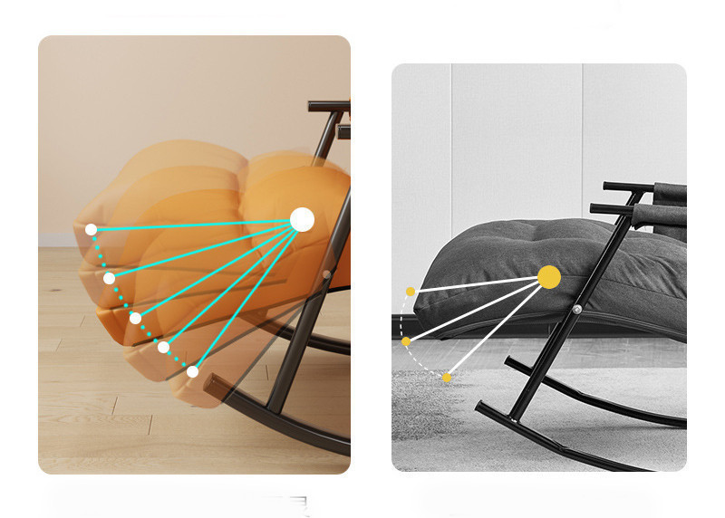 A RelaxRocker narancssárga hintaszék olyan puha és kényelmes érzetet nyújt, amely ideális a pihenéshez és relaxáláshoz. Az ülőrészének puhasága és formája olyan érzést kelt, mintha a felhasználó beleülné a felhők puhaságába. A sülyesztett érzet, amit a kényelmes formatervezés ad, fokozza a pihenés élményét, miközben lehetővé teszi a test tökéletes illeszkedését a székbe.