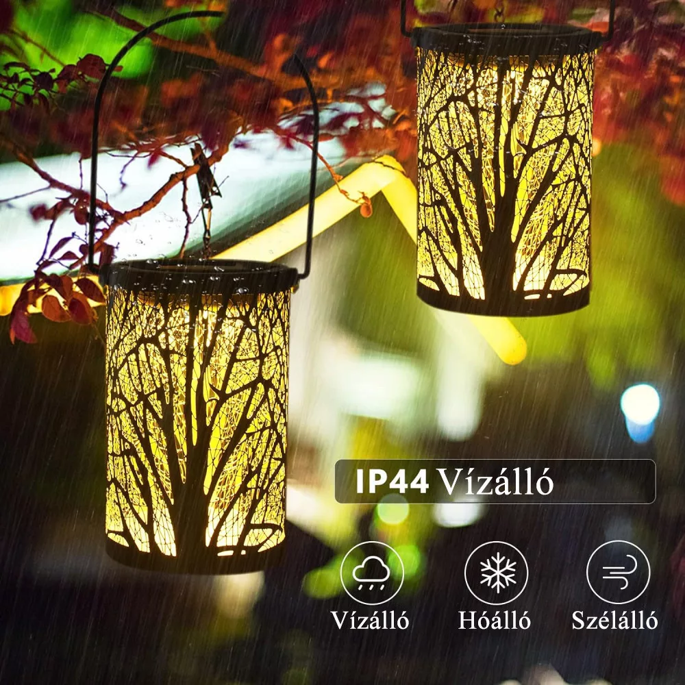 Napenergiás lámpás kültéri használatra: Fém napenergiás lámpás kültéri akasztásra, IP44 vízállósággal. Kerti díszítéshez tökéletes napenergiás lámpás kertekbe, balkonokra és teraszokra.