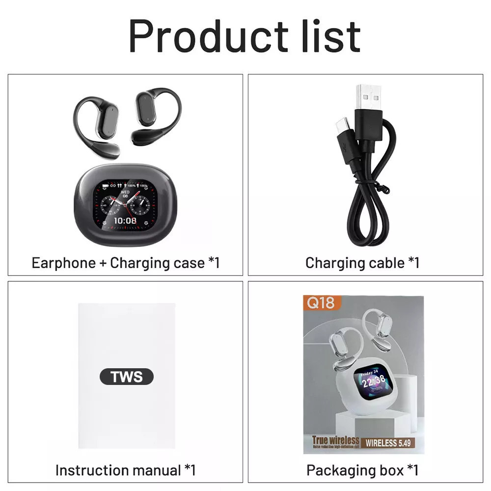 Q18 Kijelzős bluetooth fülhallgató, fehér