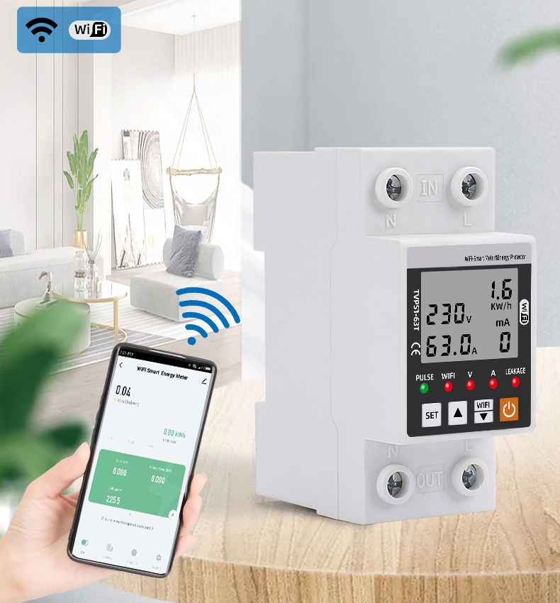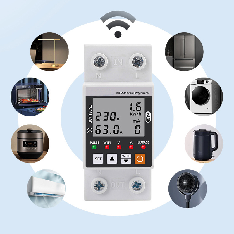 A többfunkciós elektromos fogyasztásmérő az áramfelhasználás folyamatos nyomon követésére szolgál. Nagyméretű LCD kijelzővel rendelkezik, amely valós időben megjeleníti a feszültséget, az áramerősséget és a teljesítményt. A felhasználók egyszerűen beállíthatják a túl- és alulfeszültség határértékeket, az áramkorlátot, a szivárgó áram riasztást, valamint az automatikus visszakapcsolási időt.