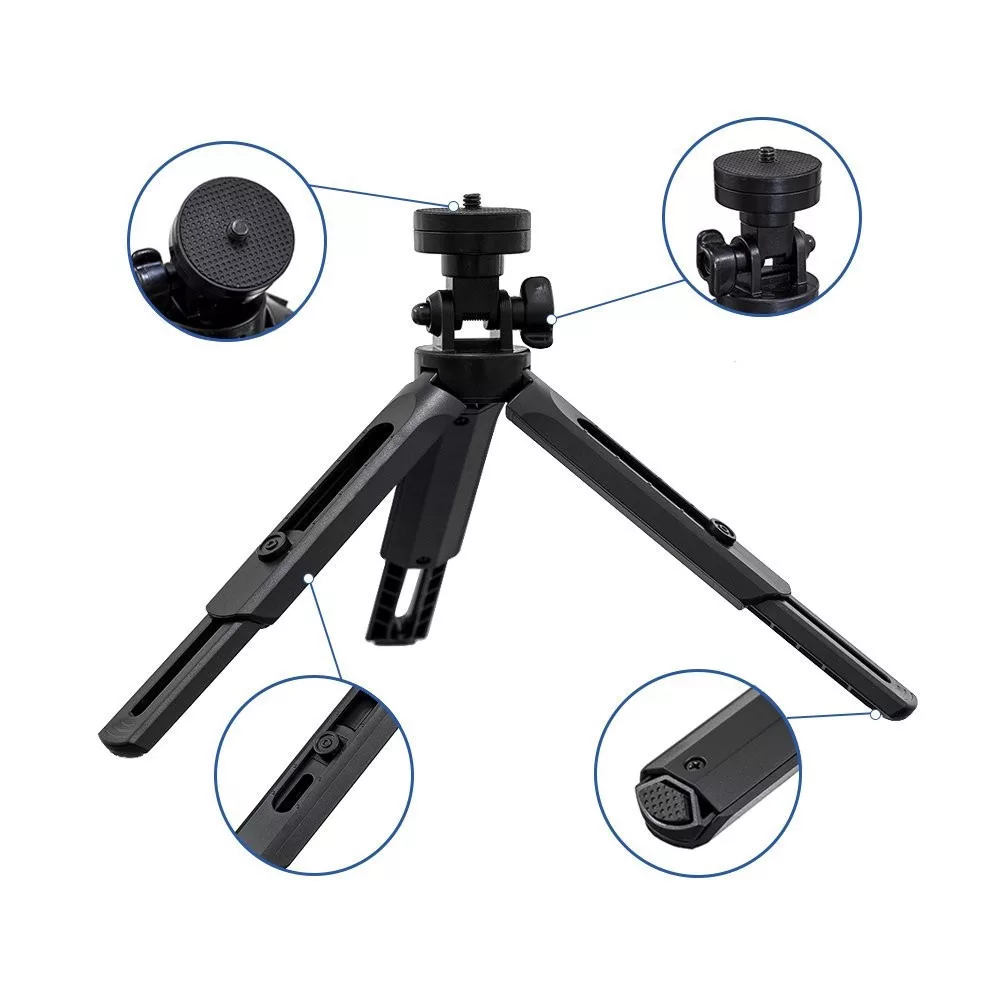 Összecsukható, 360 fokban forgatható mini tripod és telefon tartó állvány. Akár GoPro kamerával is használható. Könnyű és hordozható kialakítású, ideális stabilitással a tökéletes fotókhoz.